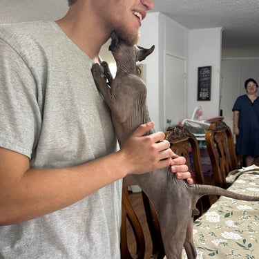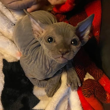 I got my Sphynx from Melissa in Boaz 6 years ago. Best decision of my life! I love my baby and Soulmate Sphynx still provides me support