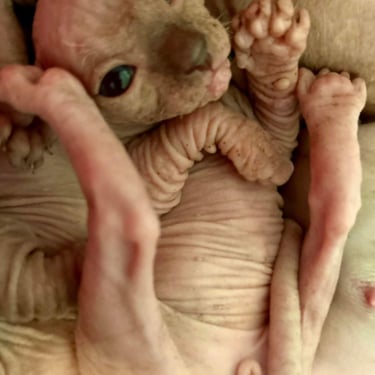 We have 2 babies from Soulmate Sphynxl. When I say these ladies love their babies, that is an understatement! Your aren't gonna find a better group to get your next baby from.