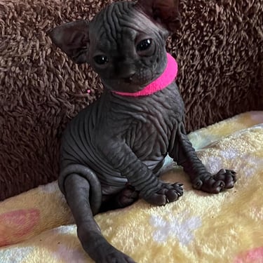 I got my very first baby boy in 2021, he was everything I could ever ask for and more! There was great communication with all of us on this journey to picking him up and normal updates! They are so taken care, normal vet check ups and making sure your furless baby is ready to come home! In 2023 I ended up getting 2 more due to the passing of my first baby! And they are just the sweetest of baby’s! I will encourage anybody that ask to go to Soulmate Sphynx!!!